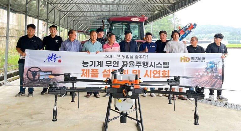 Heilongjiang Huida Technology Co., Ltd., China’s leading manufacturer of agricultural drones, tractor autopilot systems and intelligent water-saving irrigation systems, worked with the staff of South Korea’s Cheonpoong Co., Ltd and its dealers in Jinju and Jeongeup to conduct smart agricultural machinery product demonstrations for the personnel of agricultural machinery agencies and related civil servants.